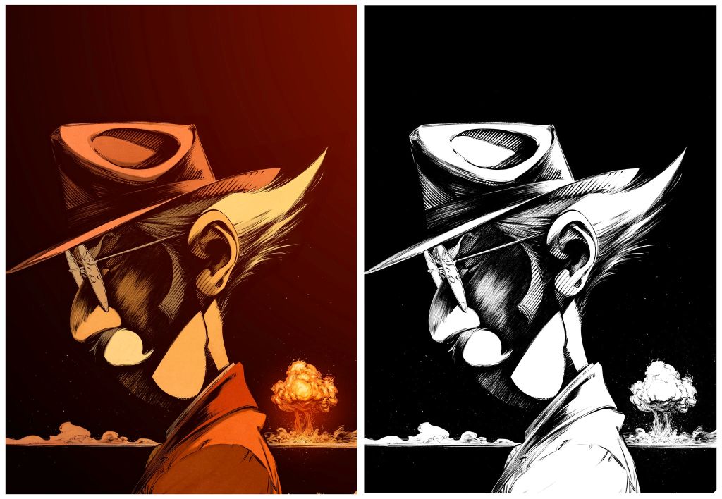 Bon sinon les vacances tout ça, ça se passe bien ? juste pour vous prévenir que la prépublication du tome 4 de Champignac avec les BeKa commence la semaine prochaine dans Spirou. L'occasion de vous montrer la couv du journal avec l'encrage ( pinceau tradi) et sa mise en couleur sur photoshop. ça permet de montrer le "tryptique" de couvertures pour ce tome 4, réalisé comme tout l'album uniquement au pinceau avec mes pognes, et sans aide de l'IA, de la 3d ou autres photos décalquées. Du vrai dessin à l'ancienne qui sent la sueur et qui n'arnaque pas le lecteur. Bonne soirée.