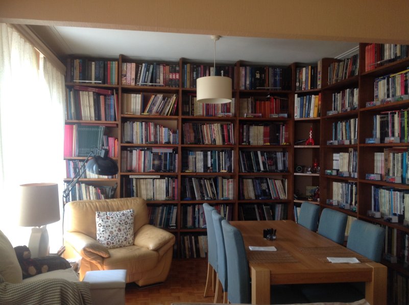 Chez moi les bibliothèques sont dans ma chambre (mes archives, quelques 5.000 lettres, et autres documents) et dans le salon