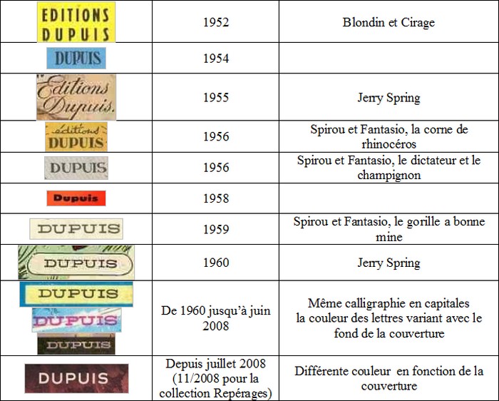 Chronologie des logos de couverture : DUPUIS