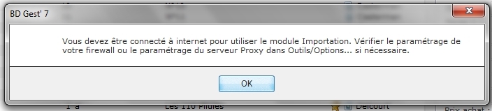 Visiblement BDGest ne parvient pas à se connecter à internet. C'est, dans 99.9% des cas, un problème de firewall qui bloque le logiciel.