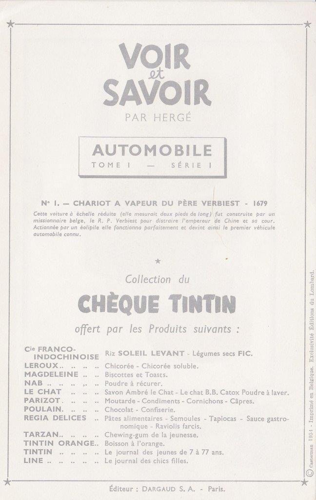 Notamment, je voudrais bien faire les Chromos Tintin Voir et Savoir, et travaille actuellement sur un complément de la charte à présenter sur ce sujet.