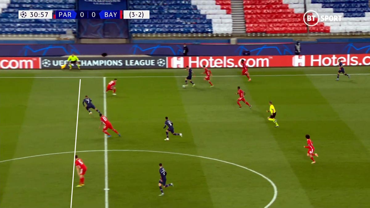 Dommage aussi que l'arbitre ait sifflé trop vite le Hors-jeu imaginaire de Mbappé... il aurait dû laisser jouer le duel et valider si il y avait eu but. (j'ai simulé la ligne où Pavard le couvre).