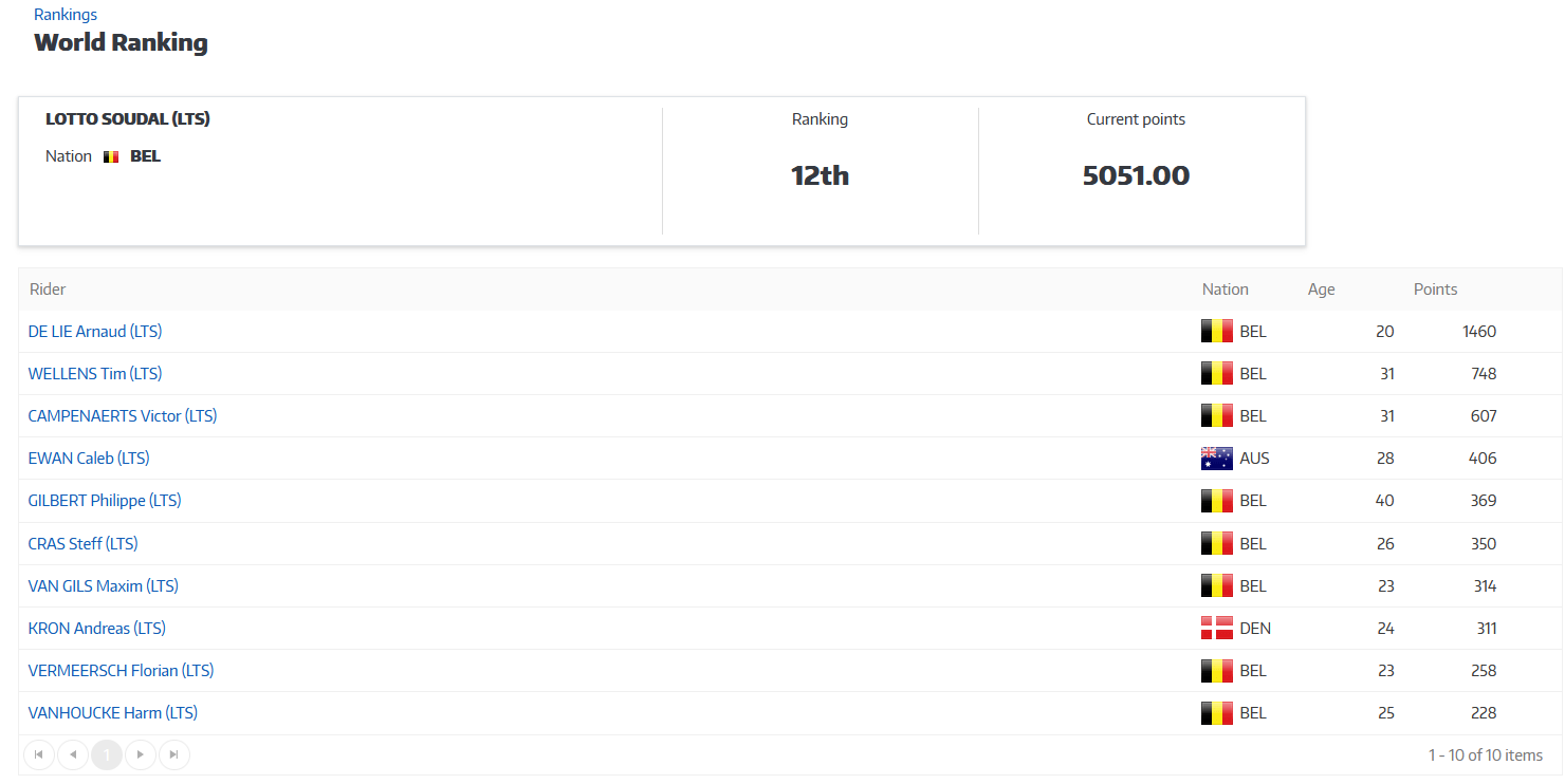 De Lie est le "Monsieur points" de la Lotto-Soudal cette année. Sans lui, l'équipe n'aurait pas la moindre chance de se maintenir en World Tour ... Mais bon, je commence à avoir l'habitude ...
