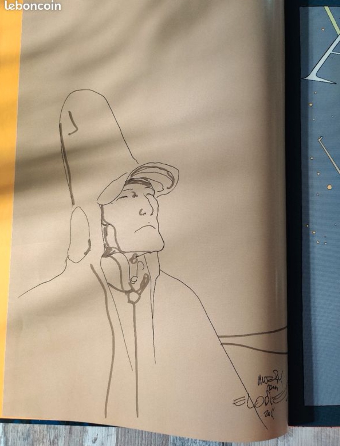 Même si la photo est floue, il ne fait guère de doutes que la dédicace est authentique. On reconnait parfaitement son trait.