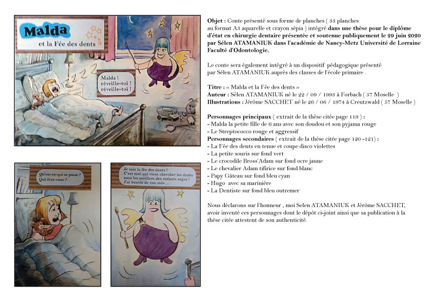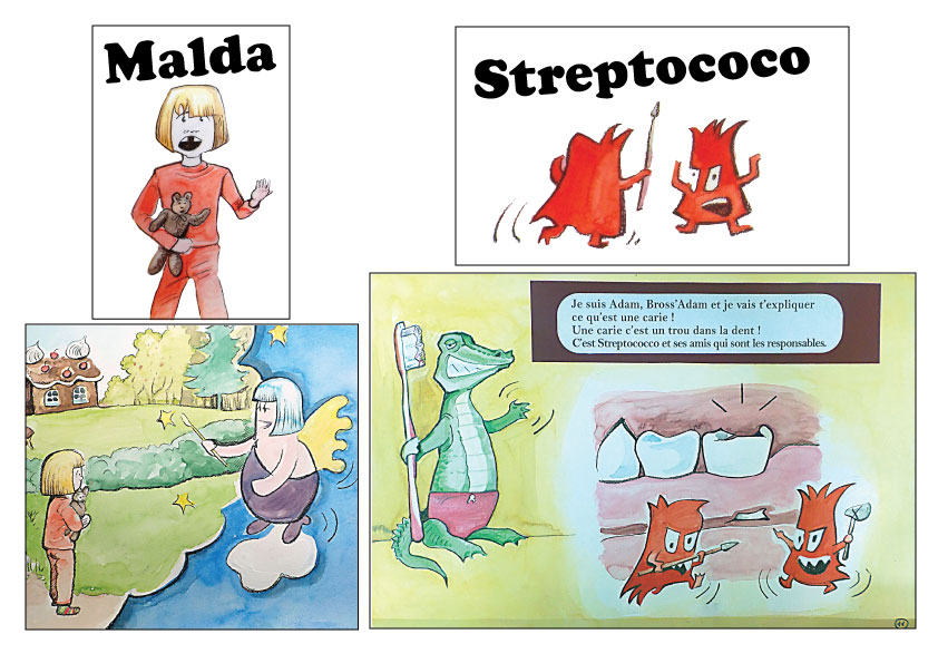Bref , je vous envoie quelques planches réalisées sur une histoire destinée à un public d'enfant sur le thème du brossage de dents par une autrice future dentiste.