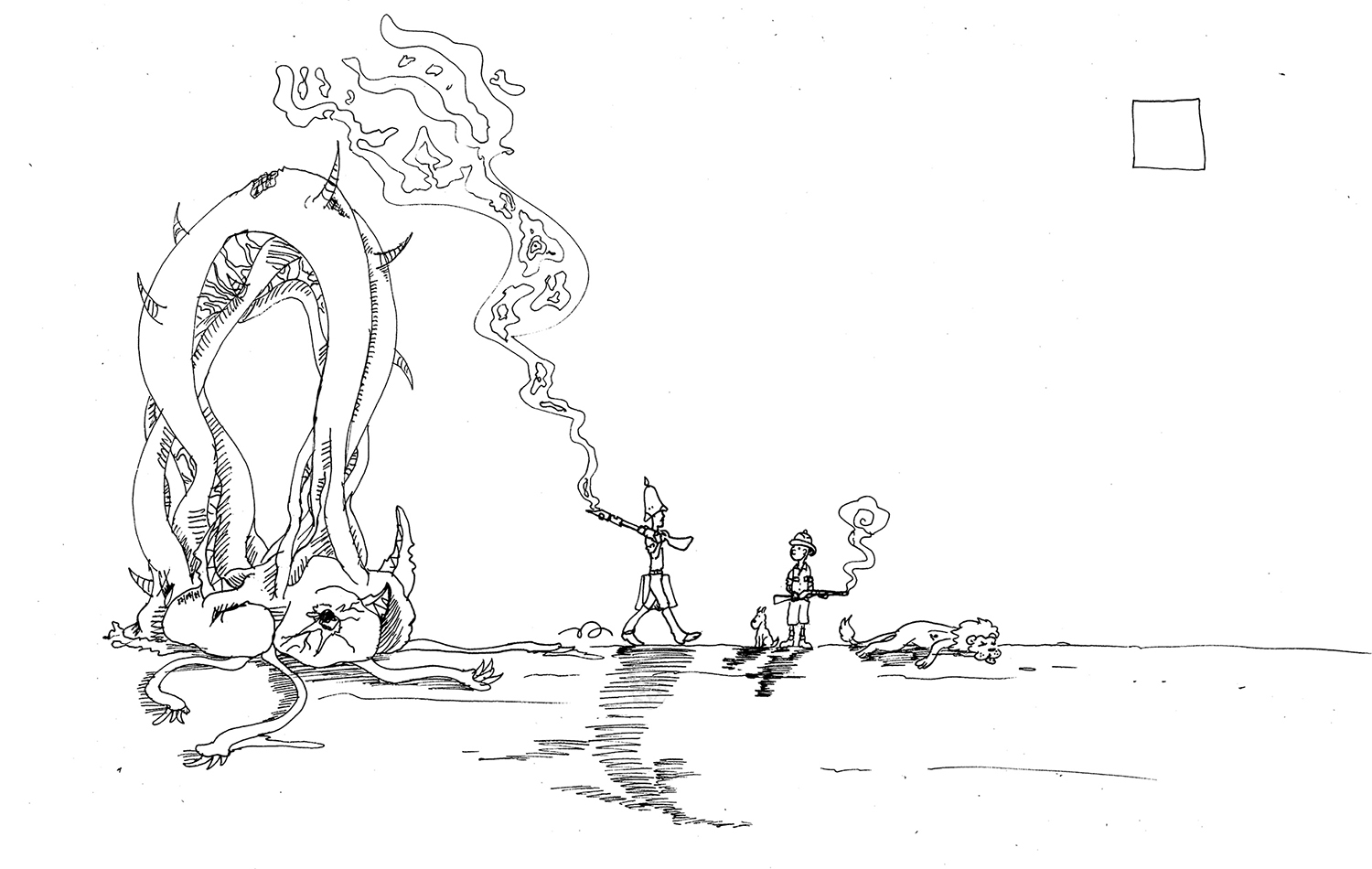 Alors, je me suis trompé et avait mis le dessin avec Grubert et Tintin dans le forum de bds franco-belges (desolé!). La premiere image est un melange de V Pour Vendetta et Asterix. La deuxieme image est une petit parodie/hommage de Moebius et Herge.