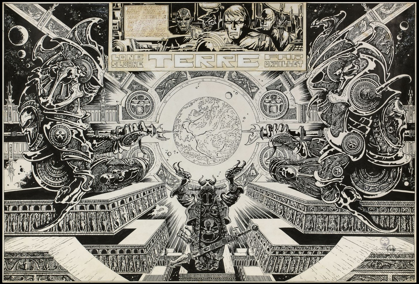 A mon avis c'est illisible aujourd'hui, sans une volonté de plonger dans quelque chose d'assez daté. La flamboyance de Druillet n'est pas dans le scénario, mais dans les dessins. Les 6 voyages, on peut le prendre comme une recueil de nouvelles années 60-70 où la structure du récit passait en arrière plan par rapport à la proposition de voyage et de paradigmes étranges ou étrangers : ce qui compte c'est d'être déroutant. C'est dantesque, à l'époque c'était du jamais vu. Geoff Darrow se réclame de Moebius mais je le trouve beaucoup plus près de Druillet dans sa frénésie des détails.