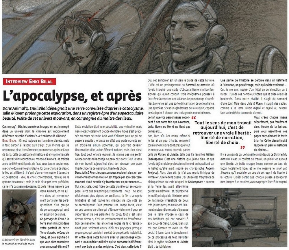 Enki Bilal, va proposer, le 23 février prochain, un nouveau tome puisant dans l'univers de Animal'z. Avec Julia & Roem, Bilal présente un ouvrage inédit, que l'on peut lire comme un one shot