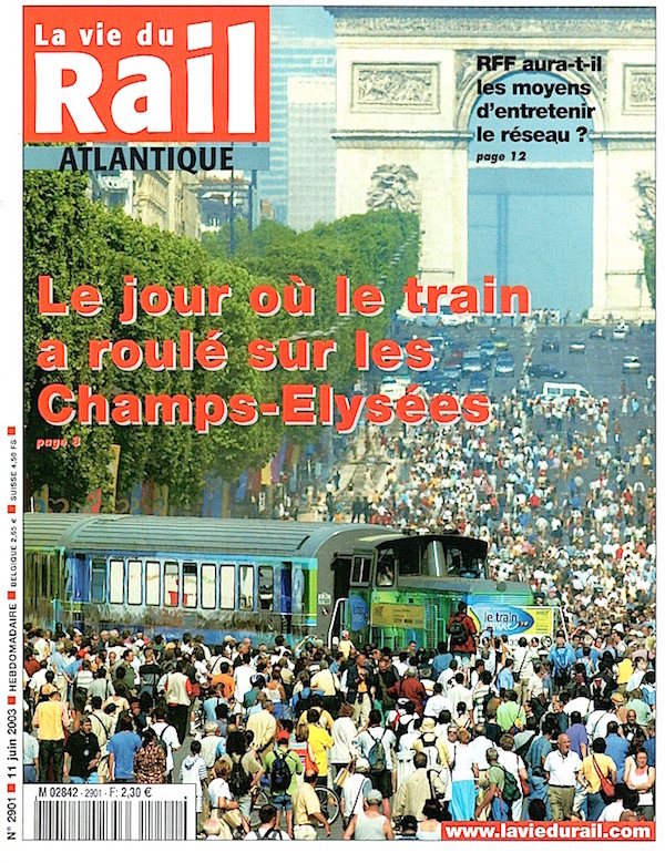 Pour l'illustration avec le "gros" train, il s'agit de l'exposition "Train Capitale", manifestation du 17 mai au 15 juin 2003, où un véritable train de la SNCF parcourait quelques centaines de mètres sur une voie ferrée installée pour l'occasion. On pouvait rouler en chemin de fer sur les Champs !