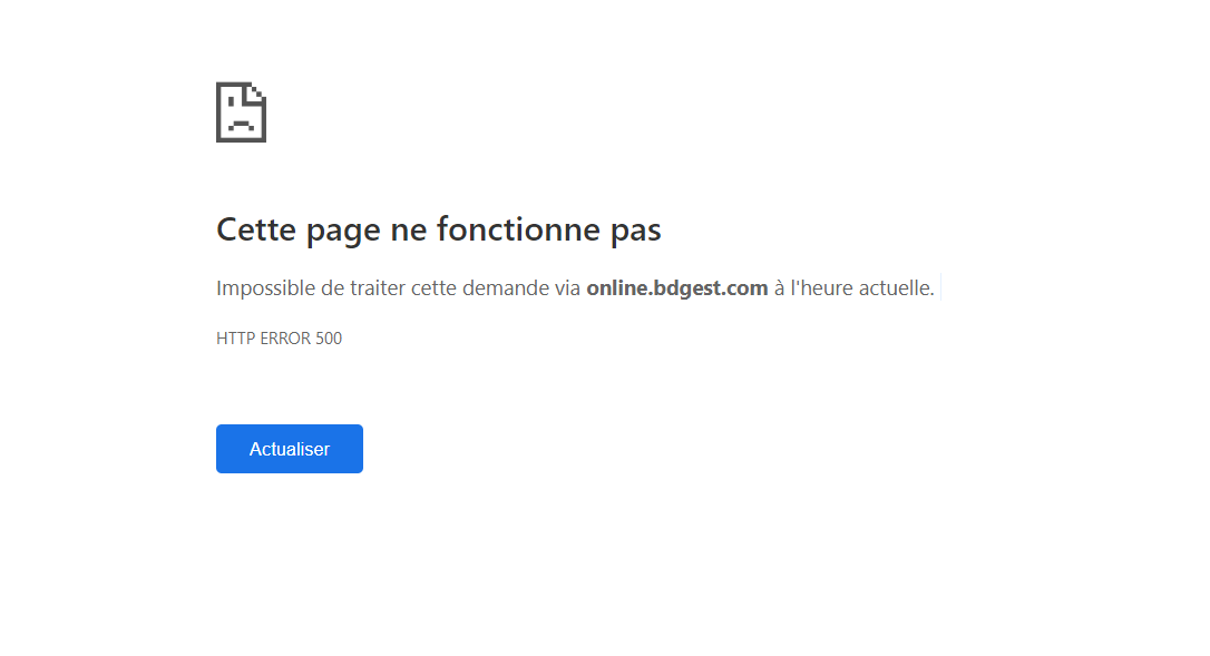 Cette page ne fonctionne pas Impossible de traiter cette demande via online.bdgest.com à l'heure actuelle.