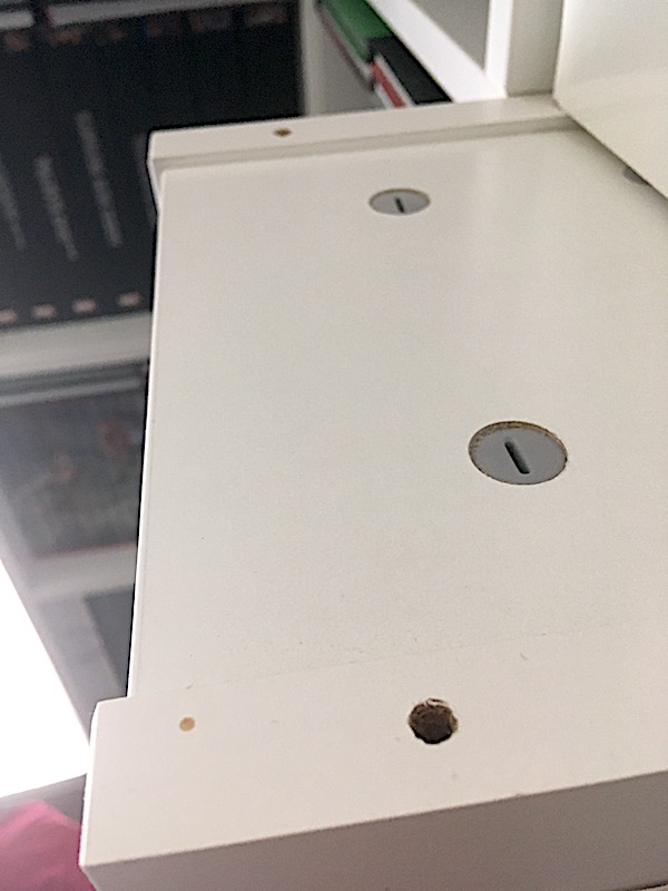 Non, je parle de la liaison entre deux Billy différentes, toutes les Billy (et les surmeubles) ont deux trous dans chaque coins avant dans lesquels ont met une tige coudées en forme d'agrafes et qui sont livrés avec (et qui doivent être mentionnés dans la fiche de montage)papyjulio a écrit:Je pense que Mickey Kuyo évoque la liaison entre la billy et le surmeuble.