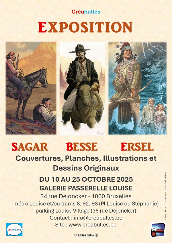 Pour sa nouvelle exposition, Créabulles aura le plaisir de recevoir Xavier Besse, Ersel et Sagar à la Galerie Passerelle Louise du 10 au 25 octobre 2025: