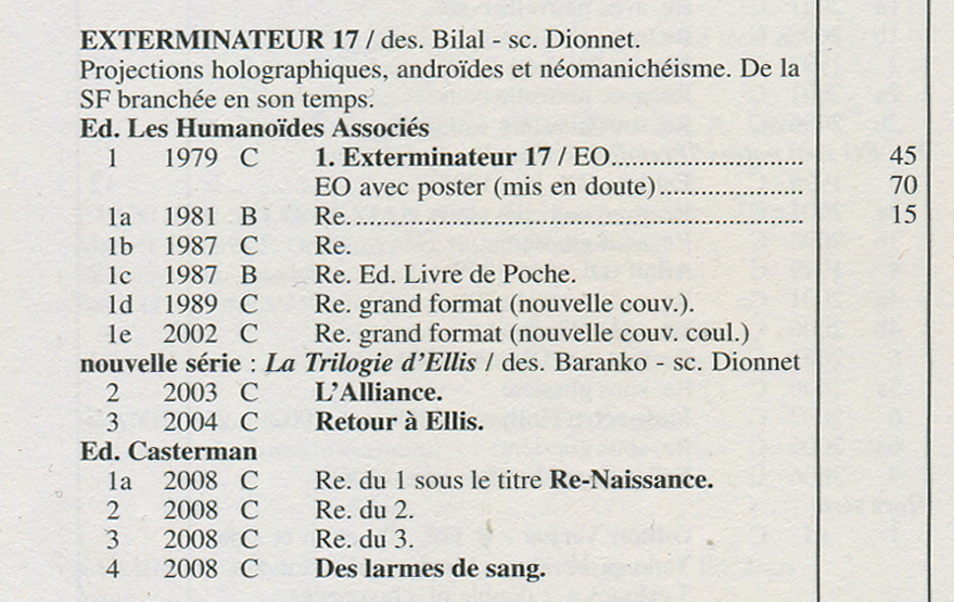 Bigwolf a écrit:Reste le mystère de Exterminateur 17 de Bilal... Quelqun a-t-il eu l'eo avec LE poster telle que présentée par le BDM ?![]()