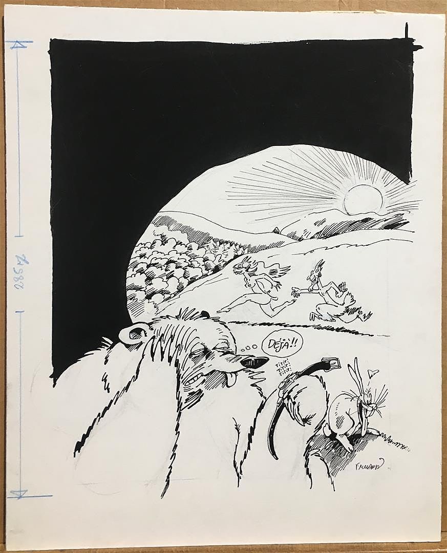 Le Transhumoriste, portrait de F'murrr par Yves FrémionPortrait presque chinois d'un monomaniaque amoureux de L'alpe.Il ne faut pas prendre son ticket d'entrée dans le F’Murrrpark si l’on n'a pas auparavant renoncé à ce qu'on a appris à récole. La raison n'y résisterait pas. Il faut en effet la disponibilité nécessaire. C'est pourquoi son oeuvre, Le Génie des alpages en particulier, déconcerte. Il s'agit incontestablement d'une œuvre humoristique et pourtant la plupart des épisodes (deux planches en général) ne comportent même pas de gags. Son humour est implicite. Une fois entré dans l'univers f'murrrien, cet humour est acquis. Il est le paysage même de ses histoires, au même titre que l'herbage, non pas décor mais tapis sur lequel tout se passe. Aussi, une fois admis ce principe, rien ne surprend plus. On est happé, on est dedans, cet humour est notre paysage comme celui des personnages. On est littéralement alpagué....