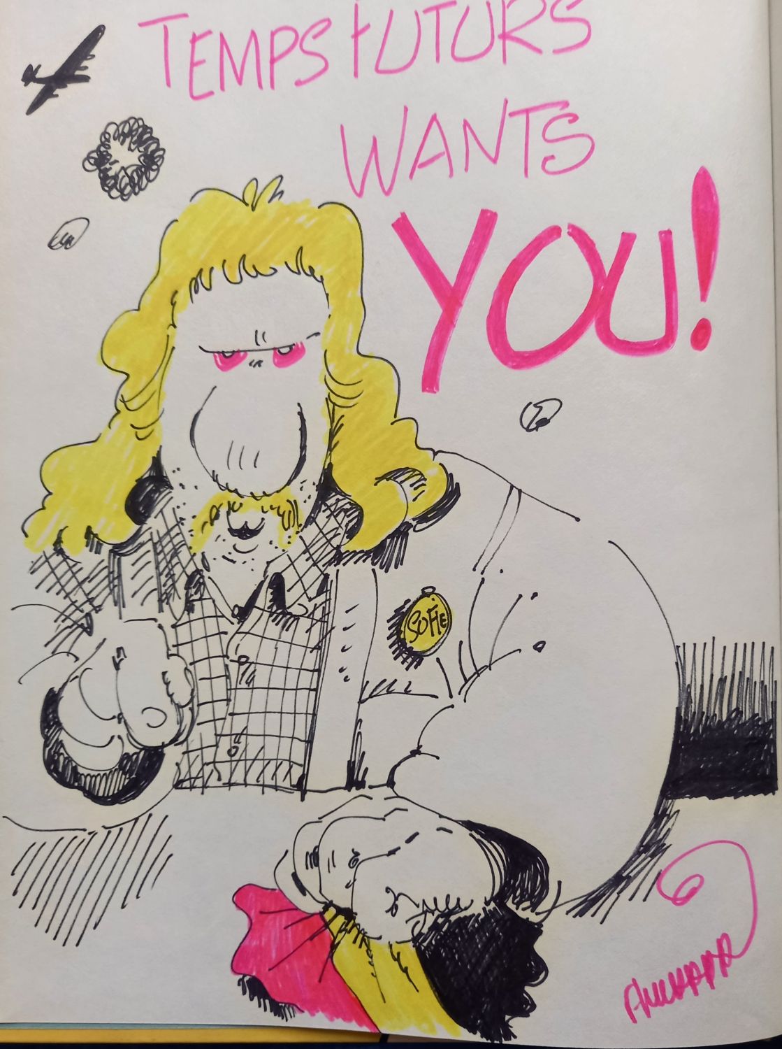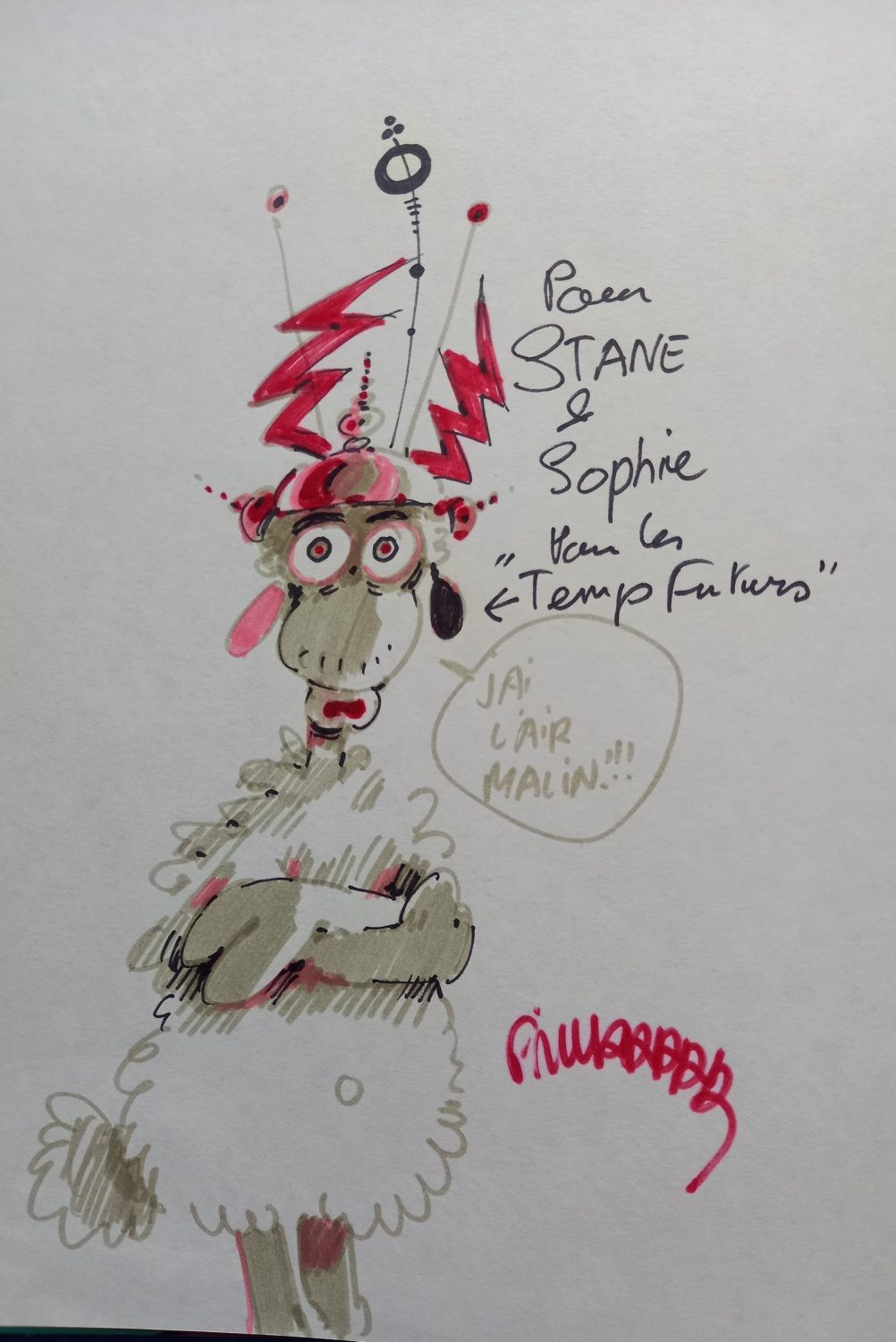 Au tout début des années 1980, Stan Barets et son épouse Sophie possédaient la librairie Temps Futurs à Paris, à côté de la librairie des éditions Dupuis, spécialisée en SF, comics, cinéma et BD. Comme Chaland ou Moebius, notre F'Maître fréquentait cette librairie . Voici deux de ses dédicaces aux propriétaires de la librairie, dans les albums "les Intondables" et "Hi-Yo ...".