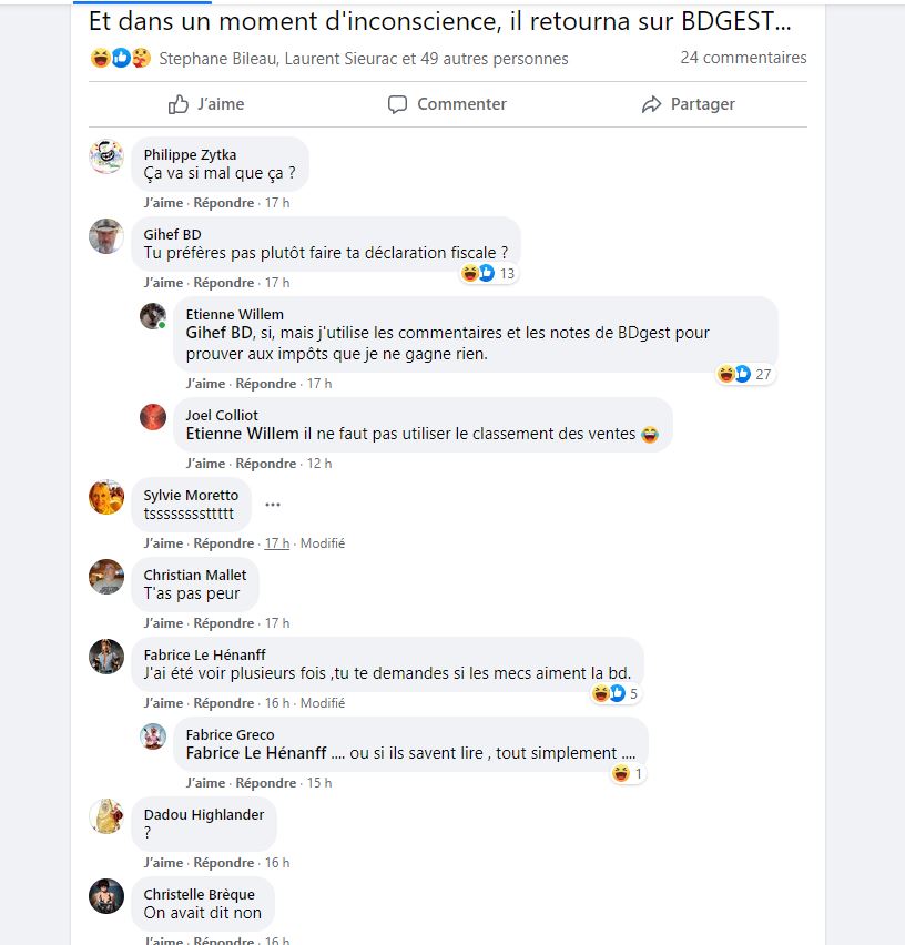 Voilà. C'est le côté ingrat du boulot d'auteur BD : tu bosses comme un dingue pendant des mois pour sortir un album et si l'avis des gens qui auront lu ton bouquin en quelques dizaines de minutes n'est pas à la hauteur de tes espérances, ben tu te le prends en pleine poire.