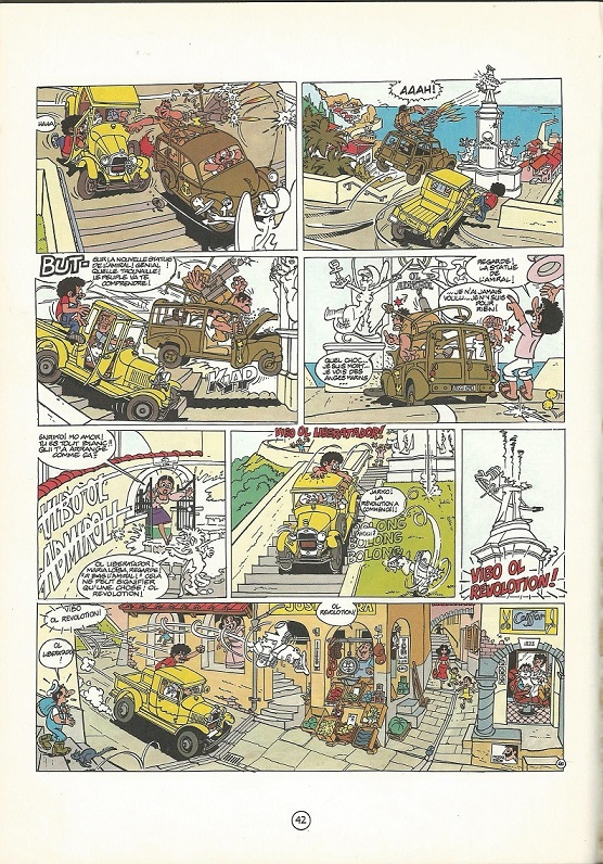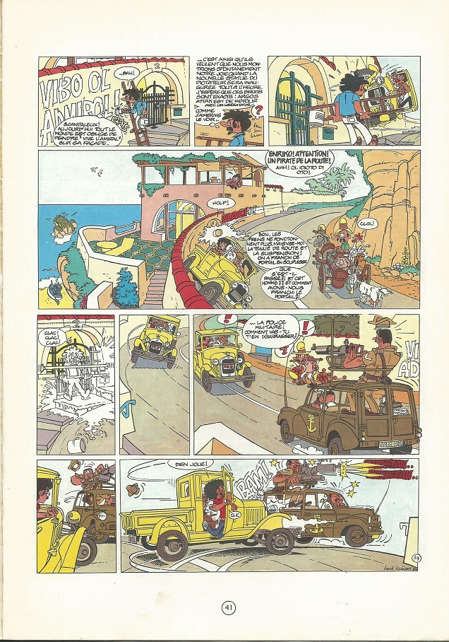 Je me suis amusé à ressortir mes Spirou d'époque, et cette séquence (la descente de la voiture jusqu'au port) est amputée d'une bonne demie douzaine de case dans l'album...