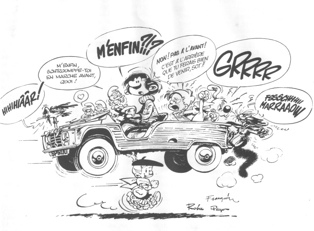 Avant de lire son entretien avec Sadoul, j'avais déjà remarqué depuis longtemps la maestria de Franquin dans cet exercice graphique, notamment dans Le Nid du Marsupilami que mes grands-parents m'avaient gentiment offert vers mes 8 ou 9 ans (la série d'albums édités vers 1966, même si on me l'a acheté quelques années plus tard) avec au 4e plat des visuels sur les Gaston à l'italienne.