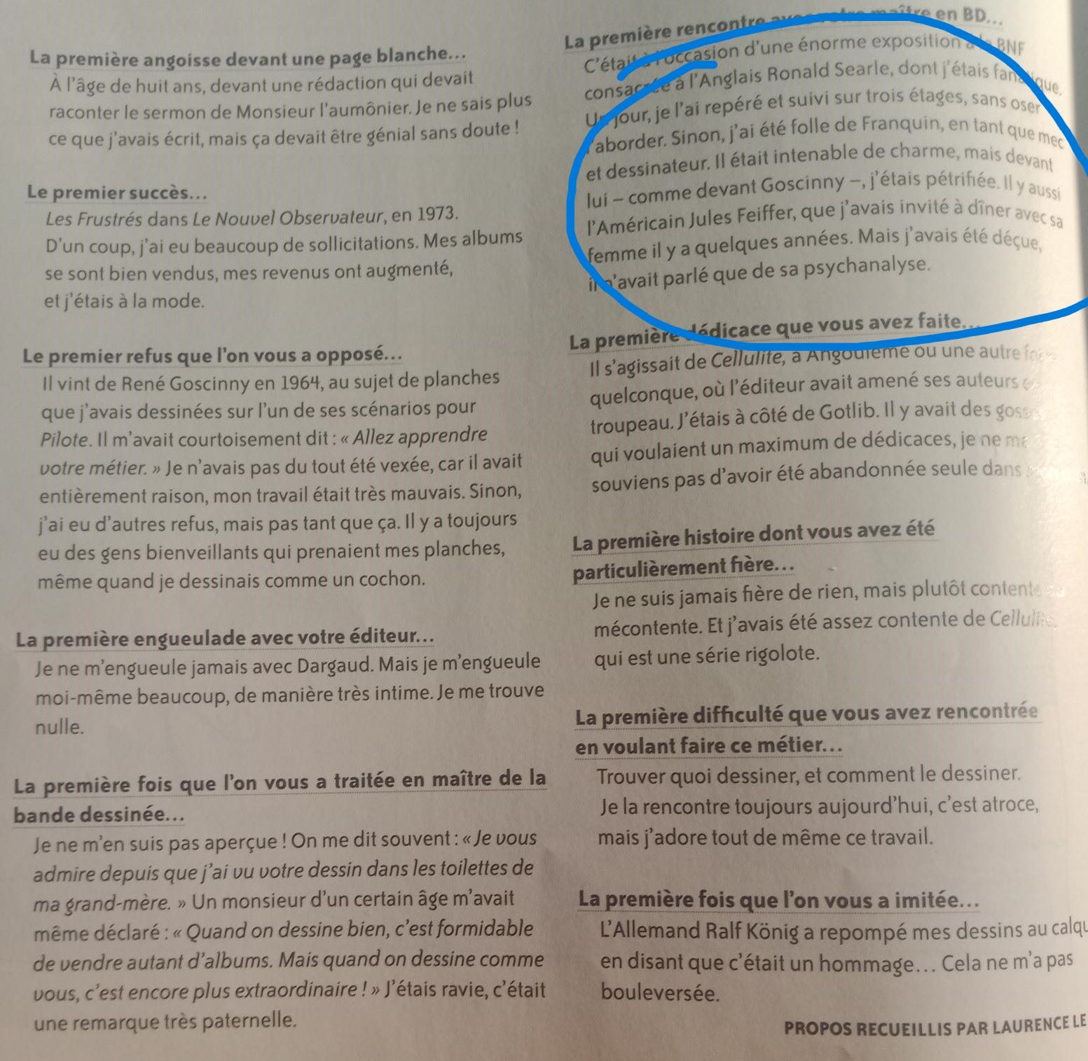 zourbi le grec a écrit:Pour me faire l'avocat du diable Isabelle , Sadoul dit que dans les entretiens suivants non publiés, Franquin a regretté s'être confié à coeur ouvert et a un peu reproché à Sadoul de lui avoir soutiré tout ça. Mais ce dernier dit bien qu'il changeait souvent d'avis, notamment sur Gaston dont il souhaitait la fin et la continuation presque simultanément.