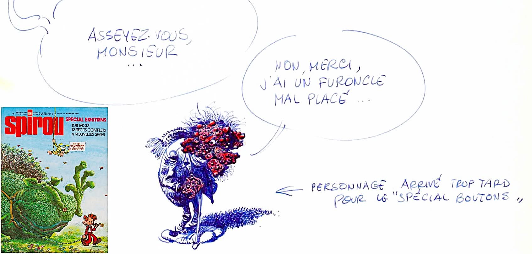 Je ne me souvient plus qu'en j'ai croisé Franquin à Angouleme. Probablement un peu apres 74 . 76 ???
