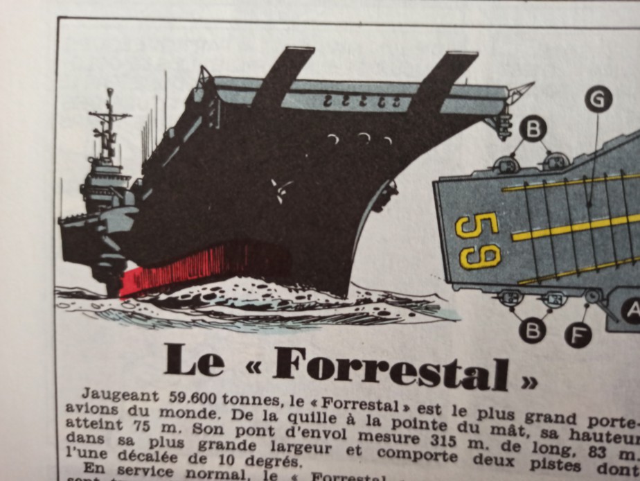 arsen33 a écrit:Le porte avion qui a servi pour ces images est l'USS Forrestal (ou un modèle équivalent). Il possède bien 3 trous/hublots ? à l'avant dans la disposition que l'on retrouve sur le dessin de Franquin et non celui de Seron.