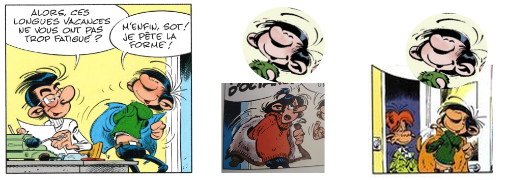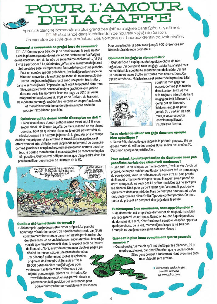Je ne sais pas si Delaf a décalqué ou a recopié mais il en reste que pour tout grand connaisseur de Gaston on ne peut que s'apercevoir du procédé. D'ailleurs comme beaucoup l'on fait remarqué dès que Delaf s’éloigne de ces inspirations/copies/calques (rayer les mentions inutiles) ça se voit comme le (gros) nez au milieu de la figure.