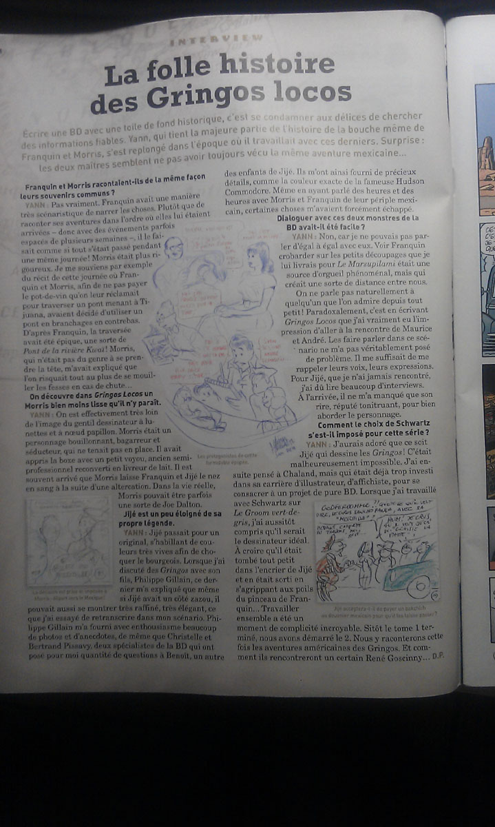 Je voudrais commencer par vous dire ce que j’aime bien dans Gringos Locos. C’est très bien dessiné, avec un graphisme sympa, bien rythmé. Schwartz a fait là un excellent travail sur un excellent projet de départ.