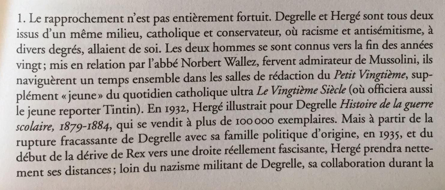 les relations avant-guerre entre Degrelle (le collaborateur belge qui se voyait en petit Hitler wallon, pour faire très simple) et Hergé dans les années 30.