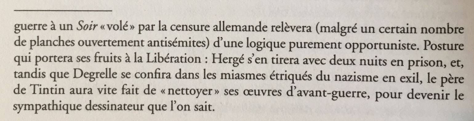 Genug a écrit:Le portrait d'Hergé par Pasamonik se résume à ceci : « Après l’avoir découvert raciste, antisémite, collabo, il ne manquait à Hergé que la case « misogyne » (bien que l’on s’en doutât…) ». Tirez l'échelle !
