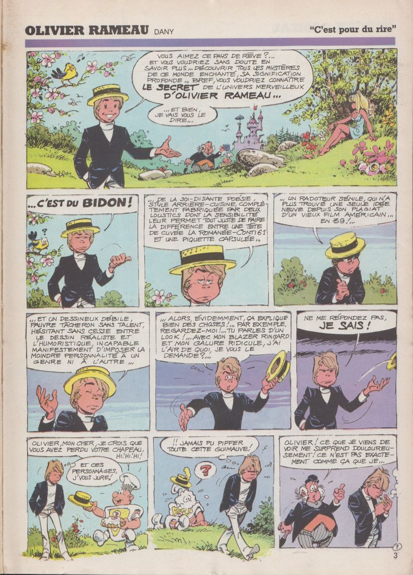 J'ai récupéré la monographie sur Dany chez mon libraire (vu trop tard ta proposition de vente directe dédicacée). J'aime beaucoup Dany sur ses séries autres que Olivier Rameau (Histoires sans héros, Arlequin, Bernard Prince, Dracula...). La lecture de cette belle monographie m'a donné l'envie de découvrir ces séries que j'avais délaissées, y compris.
