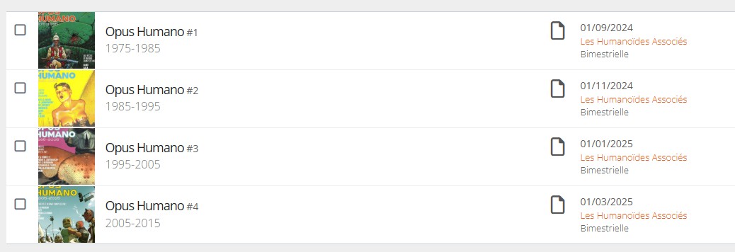Le contenu est identique (il y a même la mention "première édition"). Seuls changements, le verso des couvertures (au verso du premier plat, l'ours spécifique à la presse - au verso du 4ème plat la pub pour les 5 numéros du mook Opus Humano retraçant les 50 ans d'existence des Humanoïdes Associés).
