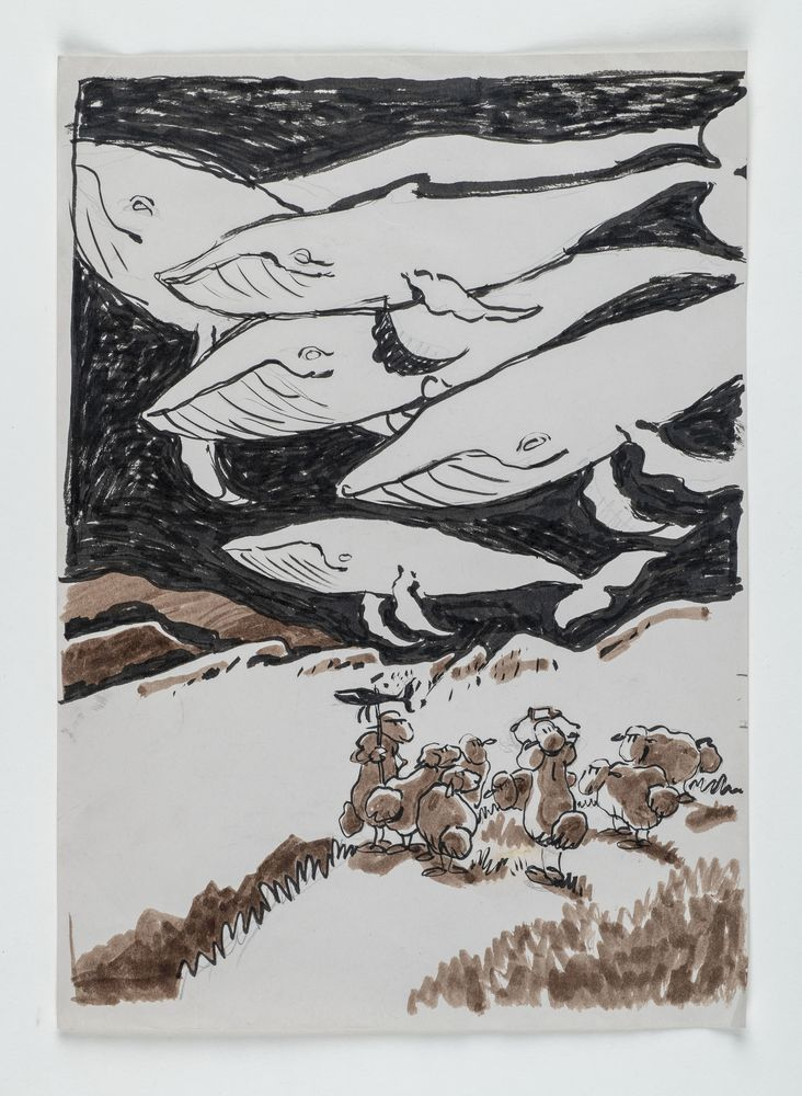 Illustration - Mème de la baleine volante, poissons etc.