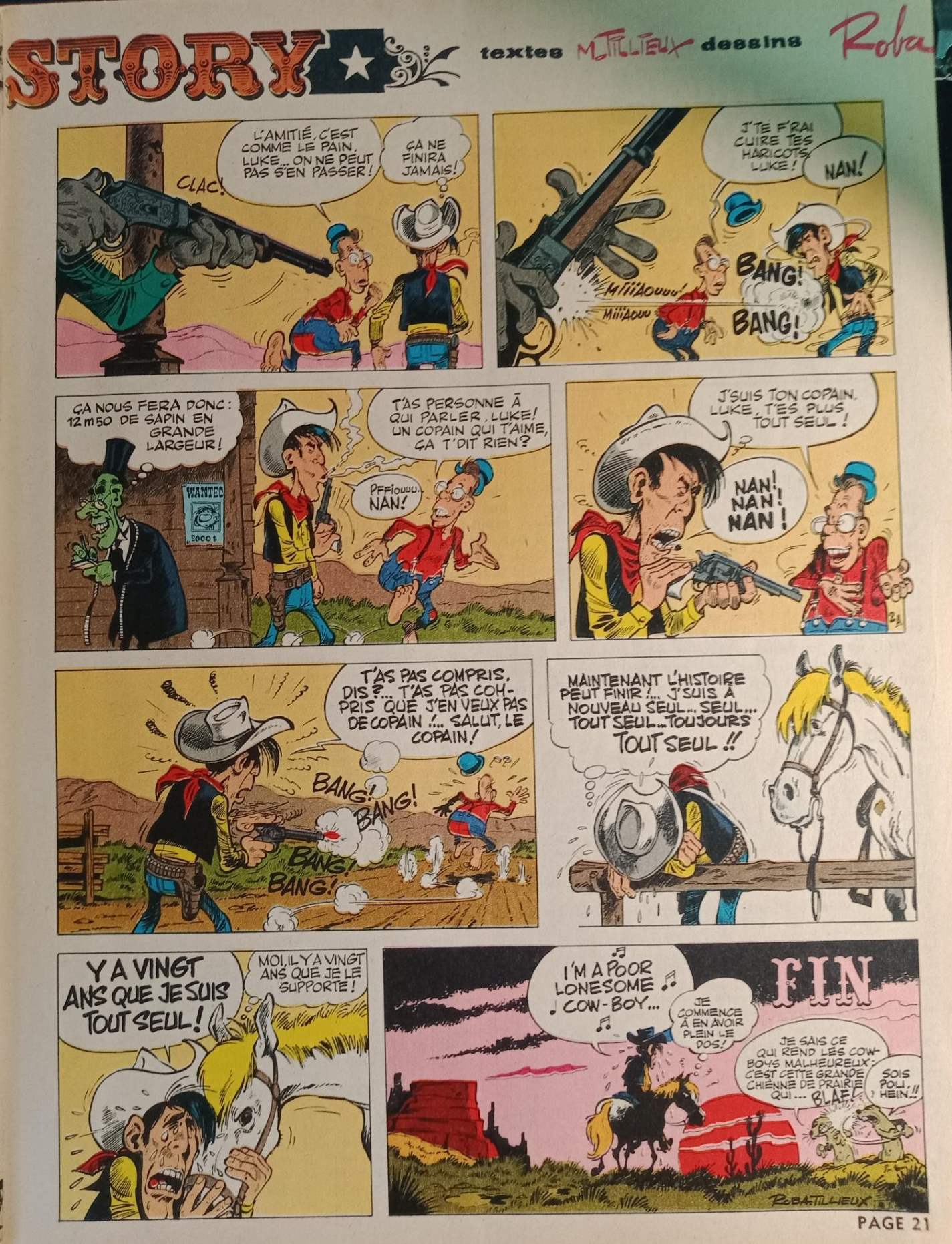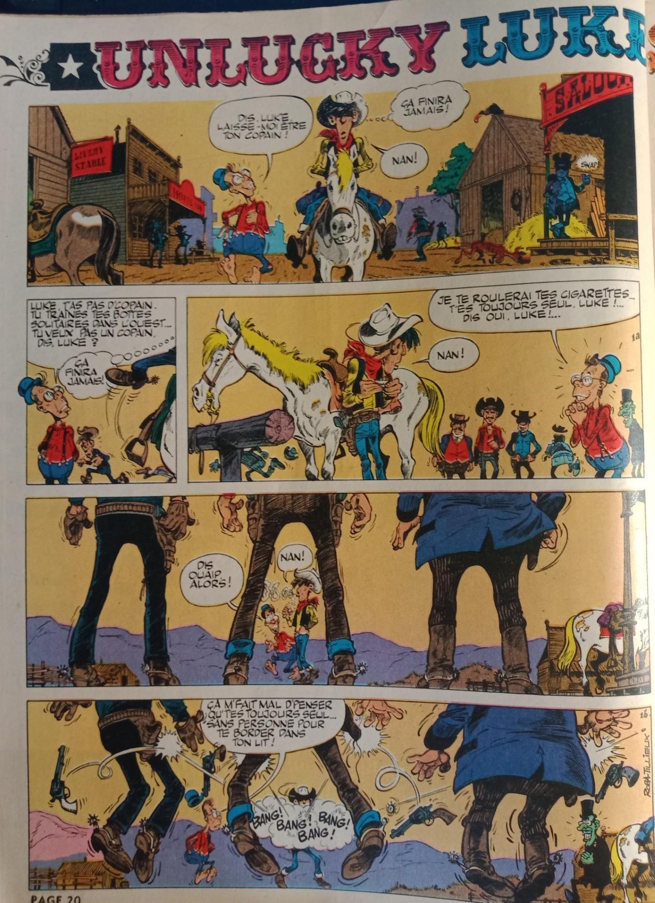 nexus4 a écrit:C'est en voyant les hommages des autres qu'on se rend compte à quel point c'était codifié Lucky Luke. Que ce soit les plans, les séquences, les couleurs, l'absence de décors, et parfois l'absence de fond, vignette signature par excellence.