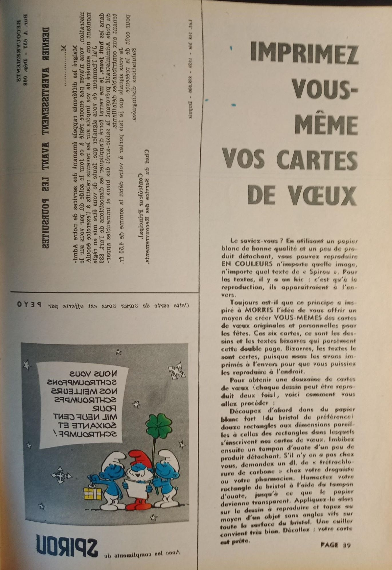 des cartes de vœux à imprimer dans Spirou 1183 en décembre 1960