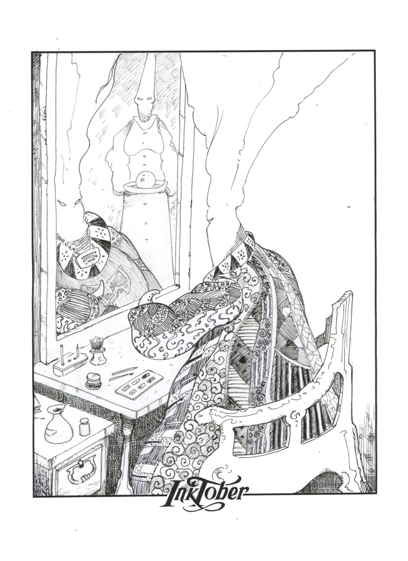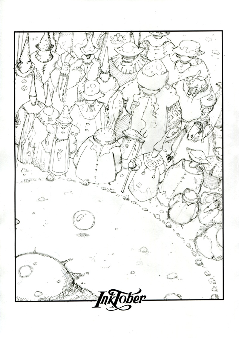 Pour ceux qui ne connaissent pas le challenge est de faire un dessin encré par jour. C'est tout. Et c'est pas évident qd c'est pas ton métier.