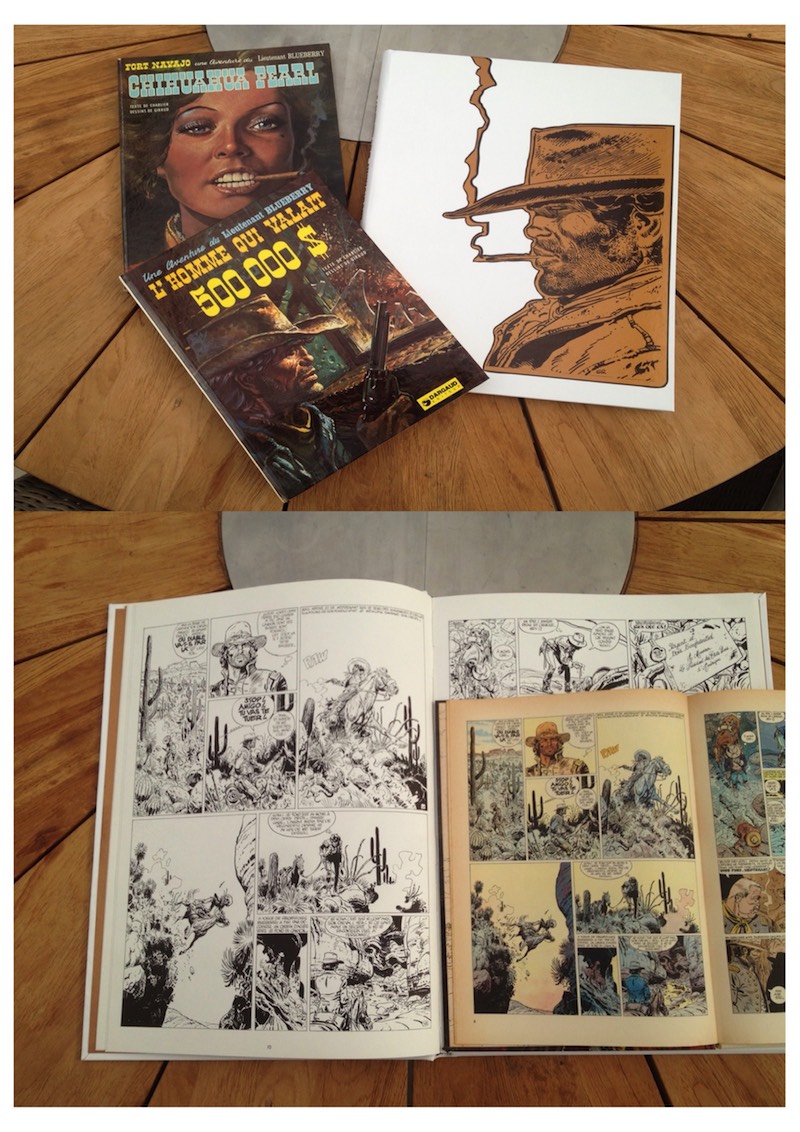 Je vais tout d 'abord vous présenter le résultat de mon travail , sachant , qu 'il est prévu dans la même production , de mettre les albums du cycle "Mister Blueberry" , "Ok Corral" sorties ces deux dernières années en version Gris.