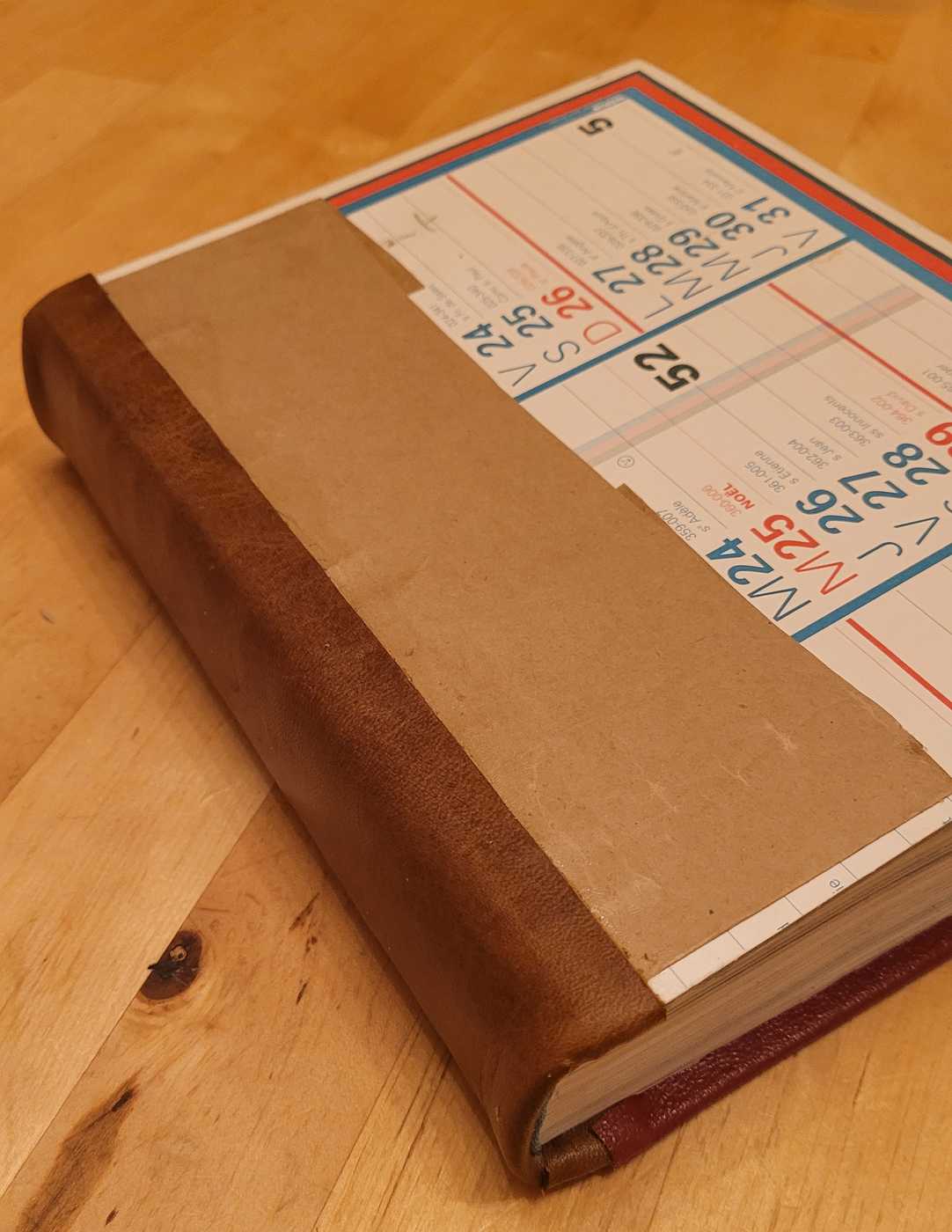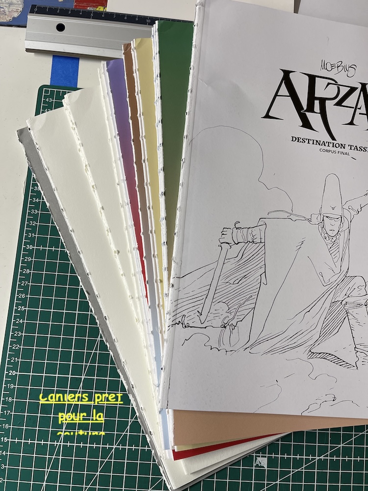 J 'ai commencé par la technique Pradel qui consiste à mettre les plats en placent le couvrant ainsi que le dos et de lier l 'ensemble sur les page de garde. (grosso-modo, c 'est la technique appliquée par les éditeurs sur les livres actuels)