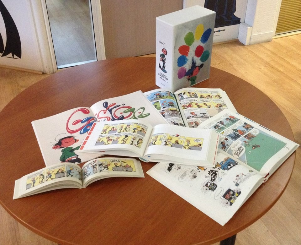 Le coffret comprend l’intégralité des planches de Gaston, dans leur ordre chronologique et remastérisées (recolorisées par Fred Jannin).
