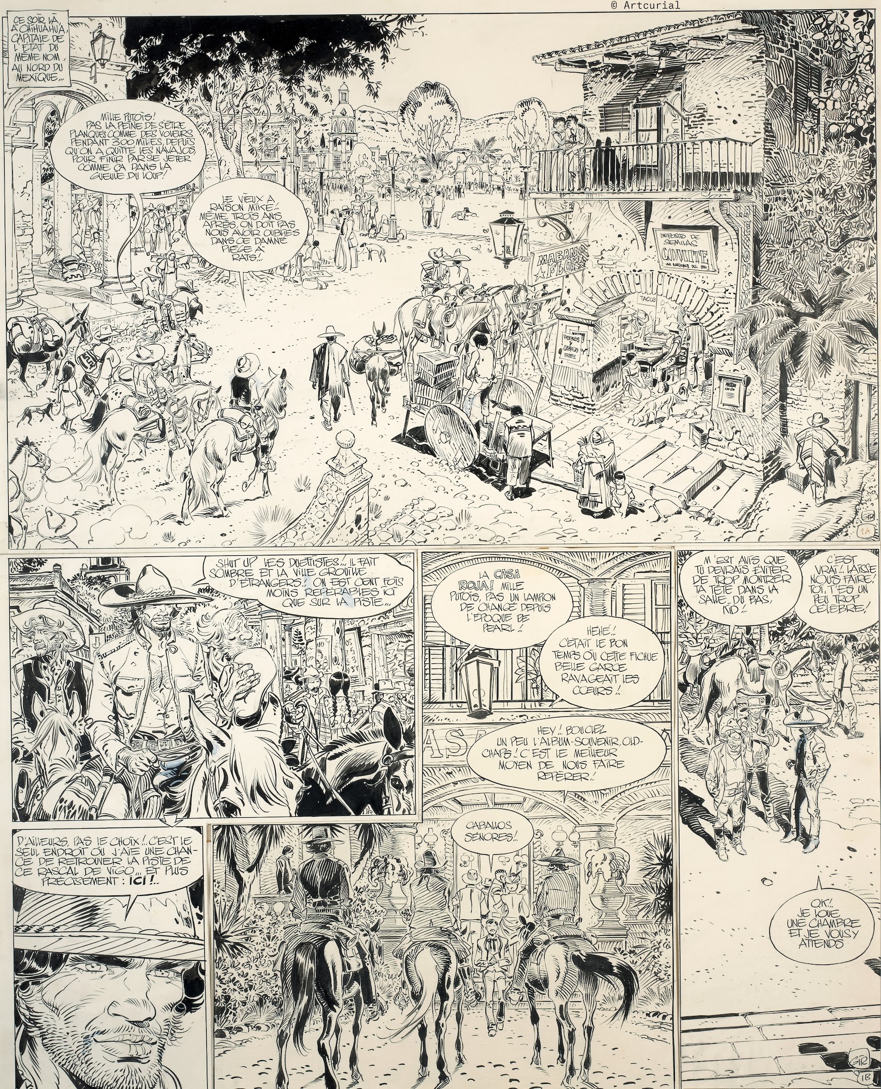 nexus4 a écrit:Pour bien commencer l'année, un détail du fameux dessin de Blueberry arrivant à Chihuahua en compagnie de Red et Jimmy Mc Clure. Il s'agit du portail. Je peux passer des heures à regarder le travail de la pierre, des fleurs et des feuillages.