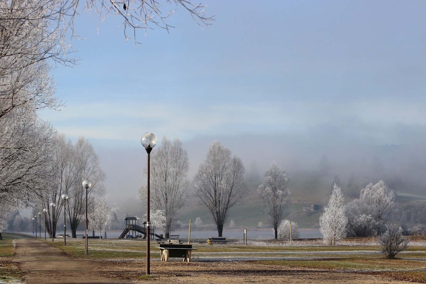 oui de l'eau gelée dans une petite piscine gonflable avec des feuilles dans l'eau et un rayon de soleil pour réveiller tout ça