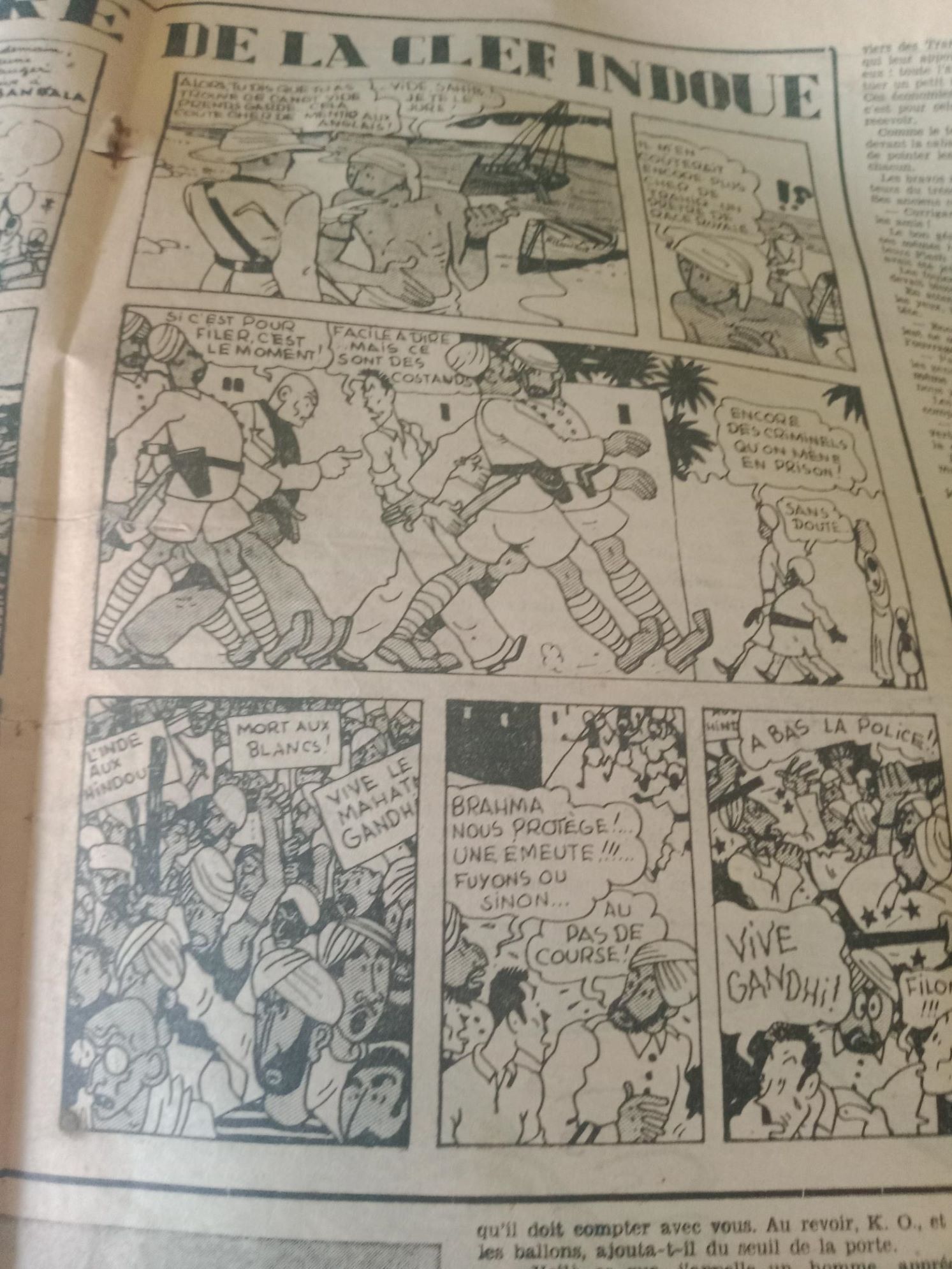 un peu étonnant dans le spirou de juin 1939 l'intrusion de la géopolitique et de la lutte anticolonialiste dans Freddy Fred "Le mystère de la clef hindoue" manifestation pro-Gandhi et anticolonialistes occidentaux anglais on est en juin 1939! Jijé un monument un peu sous-estimé
