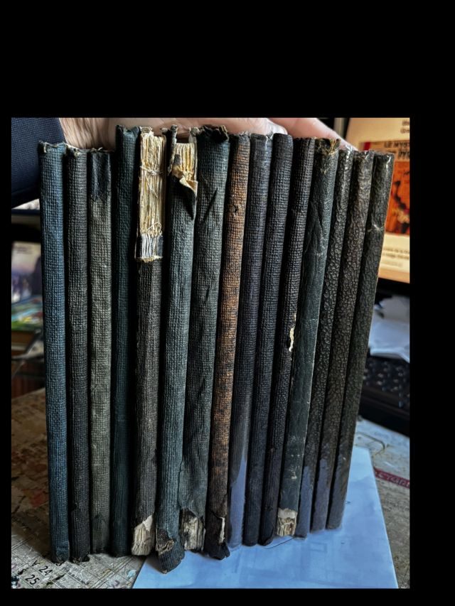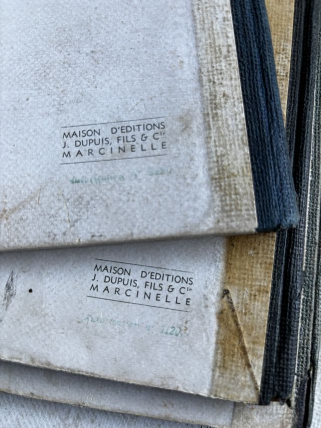 J'ai volontairement omis plusieurs détails, notamment pour la 2ème série d'albums, concernant des variantes (couleur de la page de pré titre, couleur de la page de titre, épaisseur des pages, taille et épaisseur de l'album,typographie des caractères et notamment des numéros de pages, différences de matière des dos krafts. Il existe également une version dos papier fort bleu dans cette deuxième série). J'ai consigné tous ces détails dans un tableau mais qui me semble un peu touffu à poster. Il est à la disposition des intéressés