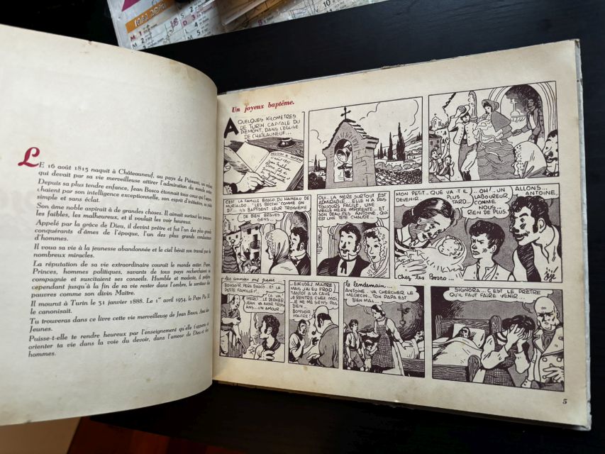 2) Une série d'éditions avec dessins en noir. Titre des pages en noir (Don Bosco). Pas de description des vignettes en haut de pages.