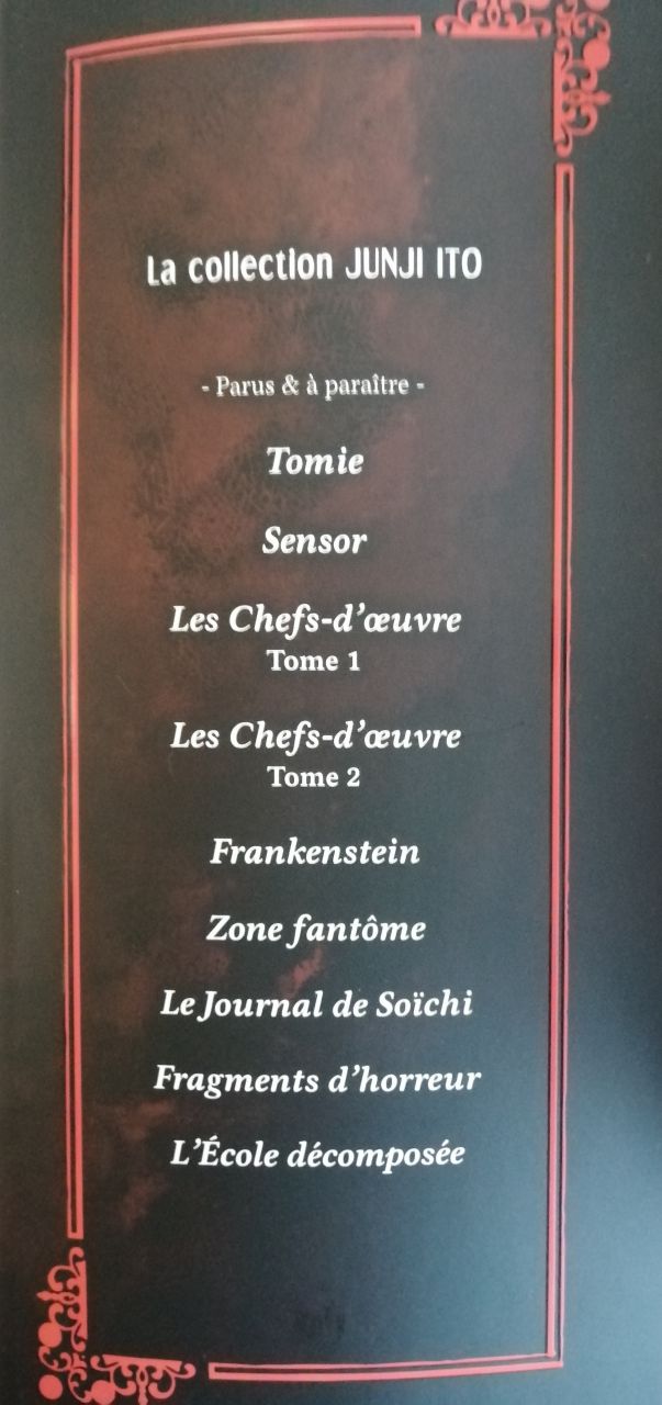), sur laquelle on peut voir, en comparant avec celles de Tomie et de Sensor, que Le mort amoureux s'invite dans la liste des titres à paraître :