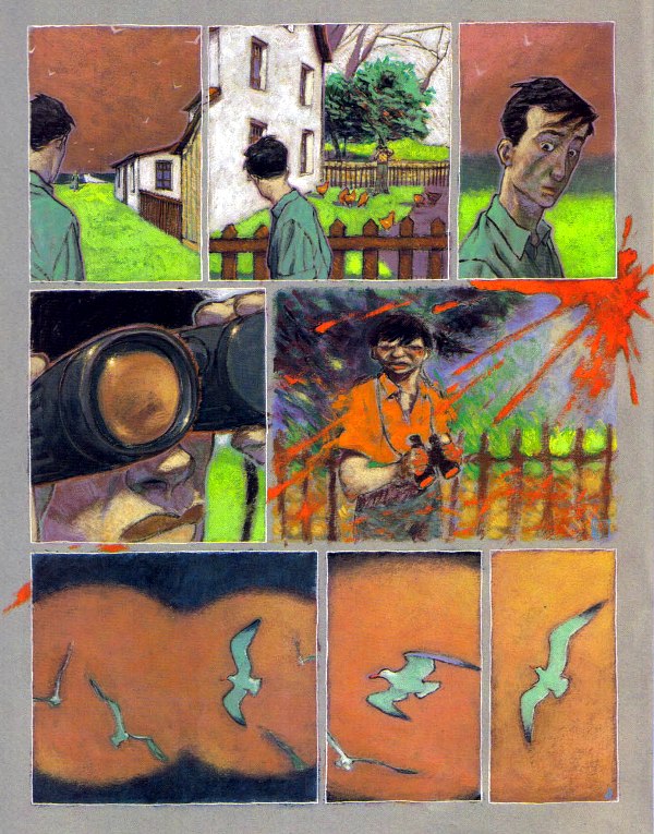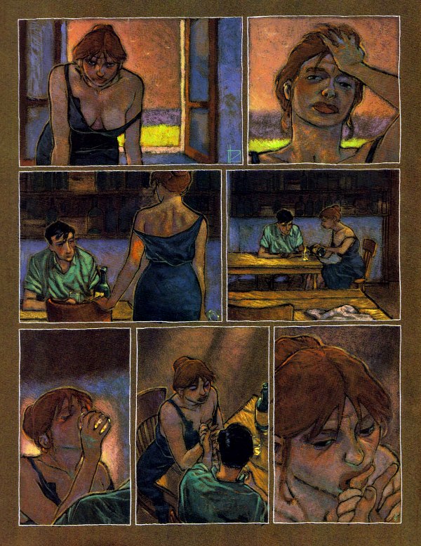 Coltrane a écrit:Prado, dans le Trait De Craie... la moitié des planches me font chavirer, surtout que la couleur du papier change au fur et à mesure de la météo et de l'heure qui passe (à ce niveau-là, la parution dans (A Suivre) était encore plus fantastique parce qu'il n'y avait pas le bord blanc dans le bouquin). >>> la p37 par ex