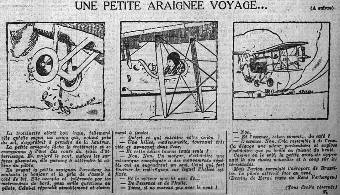 Oui il s’agit bien d'Hergé le 17 novembre 1927 dans le XXème siècle avec une histoire en image dont le texte est de René Verhagen. Le premier indice aurait été de vous préciser que l'araignée en question était une arraneus diadematus (plus communément épeire diadème ou épeire porte-croix) pour vous orienter vers le côté chrétien de l'auteur.