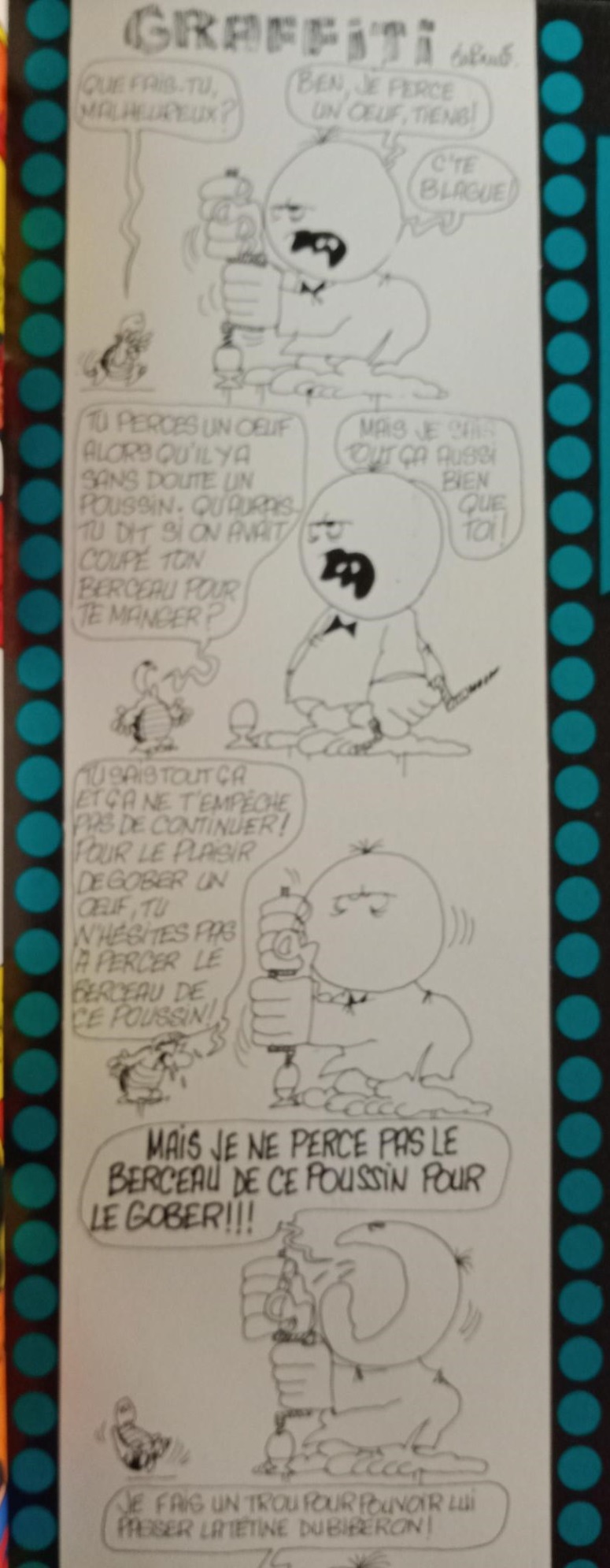 "Vous pouvez parler en toute franchise. Pour faire court, vous êtes ici chez les salopards, hein, c'est admis. On n'a pas des idées bien jojos et on n’a pas peur de le dire ! On fomente, on renégate, on laisse libre cours à notre fantaisie..."