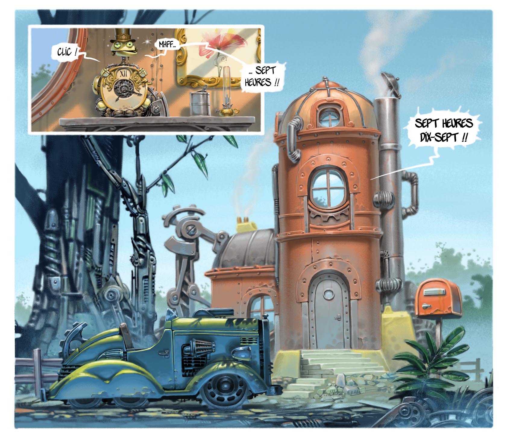 Il y a les contes mécaniques, qui sont des livres de récit illustrés poétiques (dessin et scénario par moi).