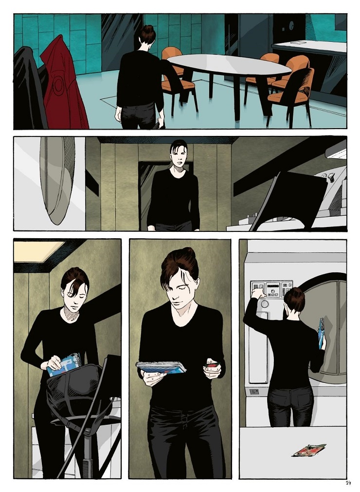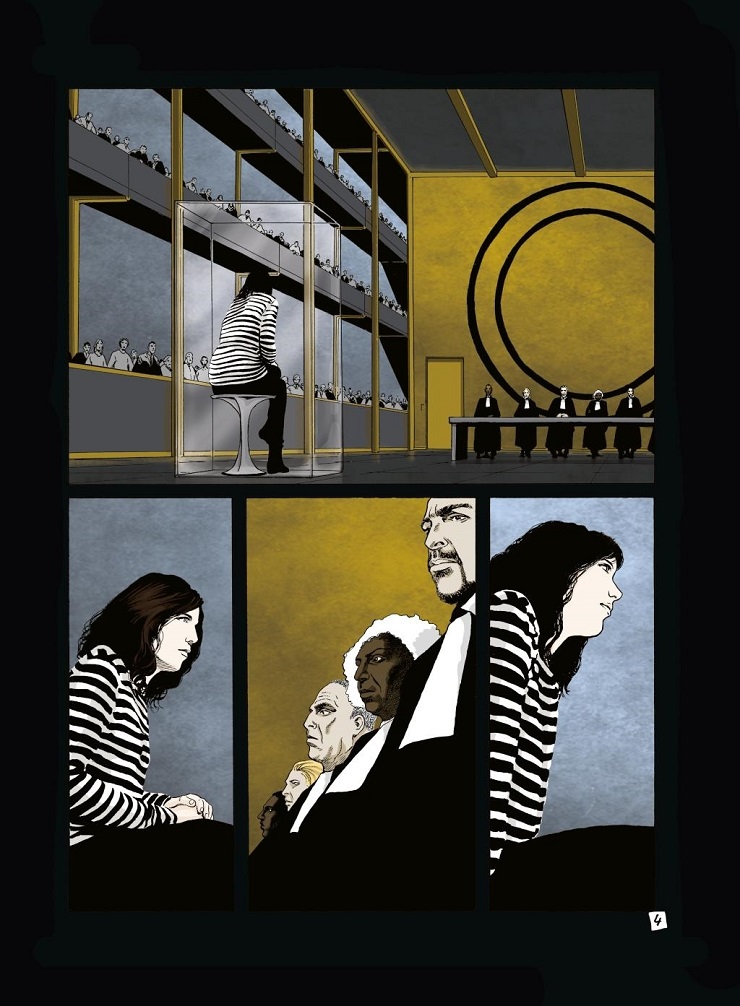 (le scénario semble coécrit par Régis Penet et sa compagne, Anne-Laure Reboul, et si graphiquement on est loin de la grâce de son Antigone ou de la puissance de son Lorenzaccio, la rigueur et la froideur qu'il impose ici à son trait sont parfaitement en phase avec le sujet)
