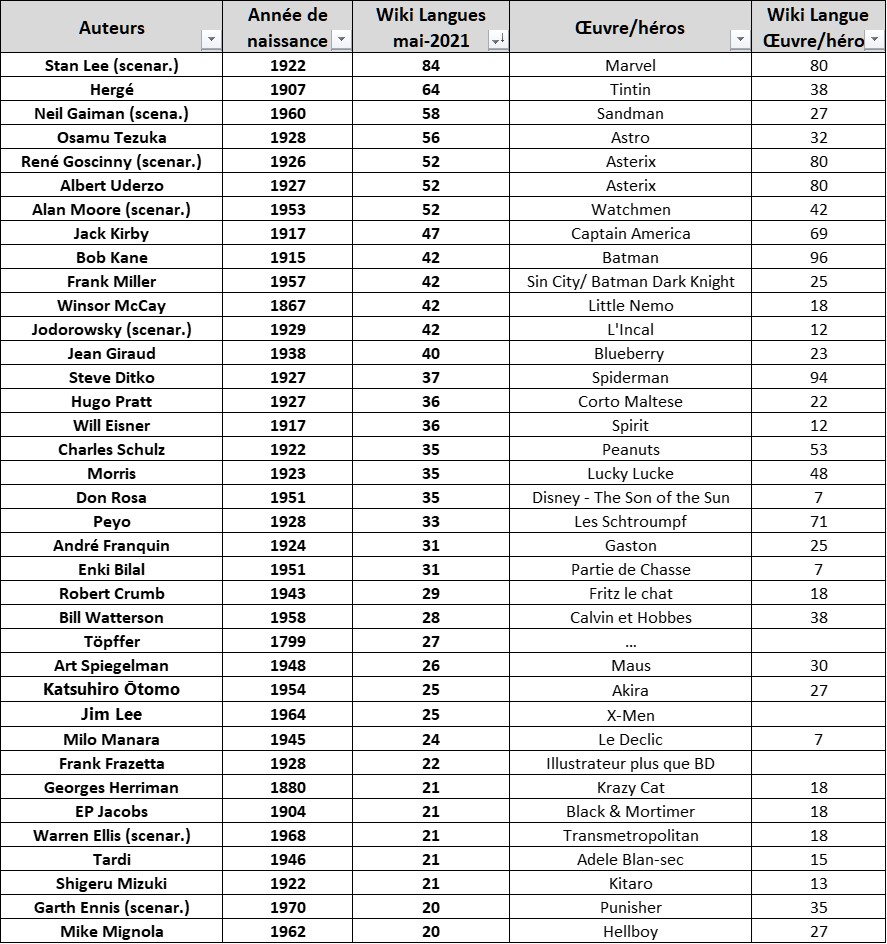 En attendant voici une sélection des "plus de 20 langues de sites Wikipedia", enrichie de la même étude pour leur héros ou serie fétiche